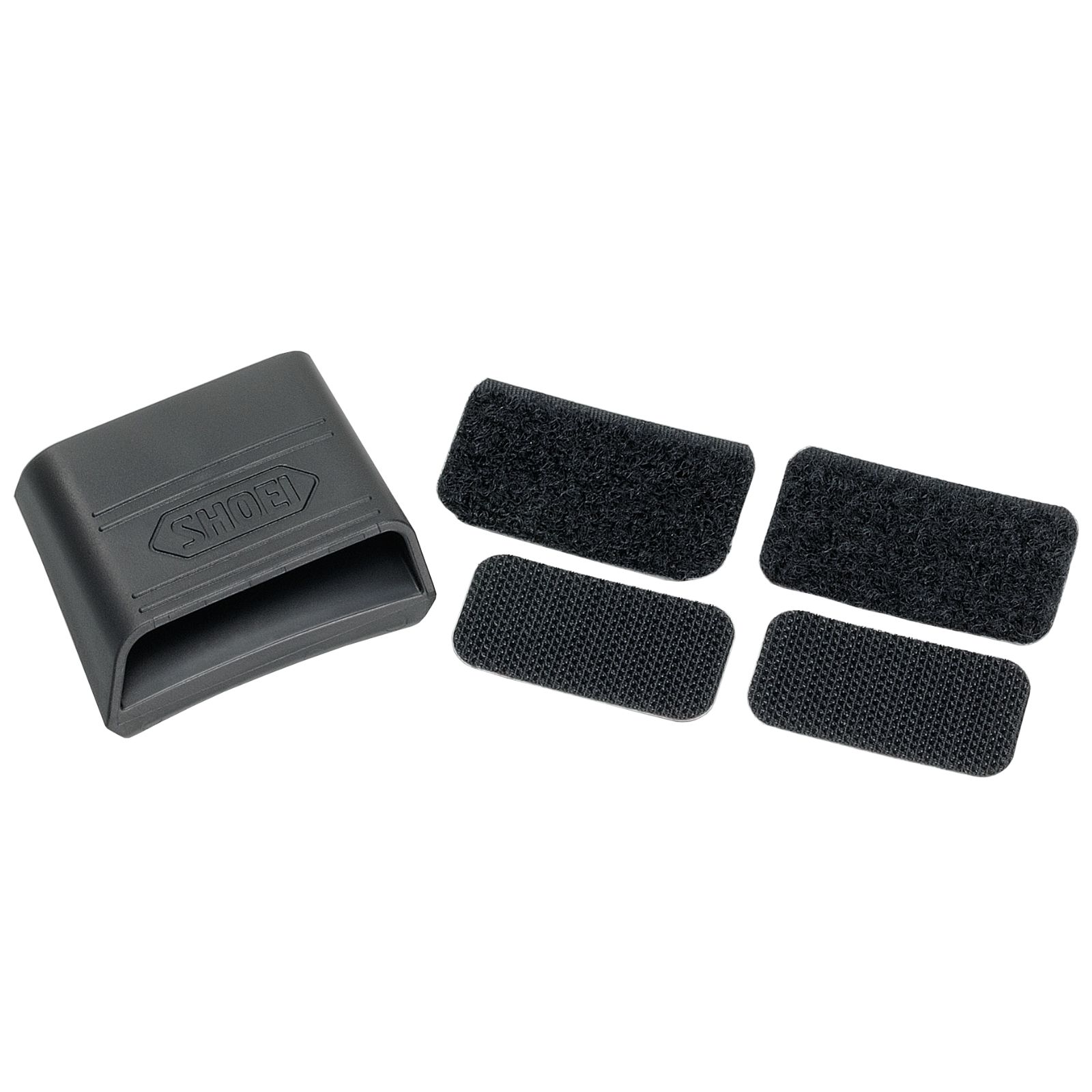 This bracket secures to the helmet using adhesive Velcro®, providing a mounting solution for most clamp-style communication systems. It eliminates the need to install the system between the outer shell and inner EPS liner, ensuring a seamless setup for your SHOEI helmet.