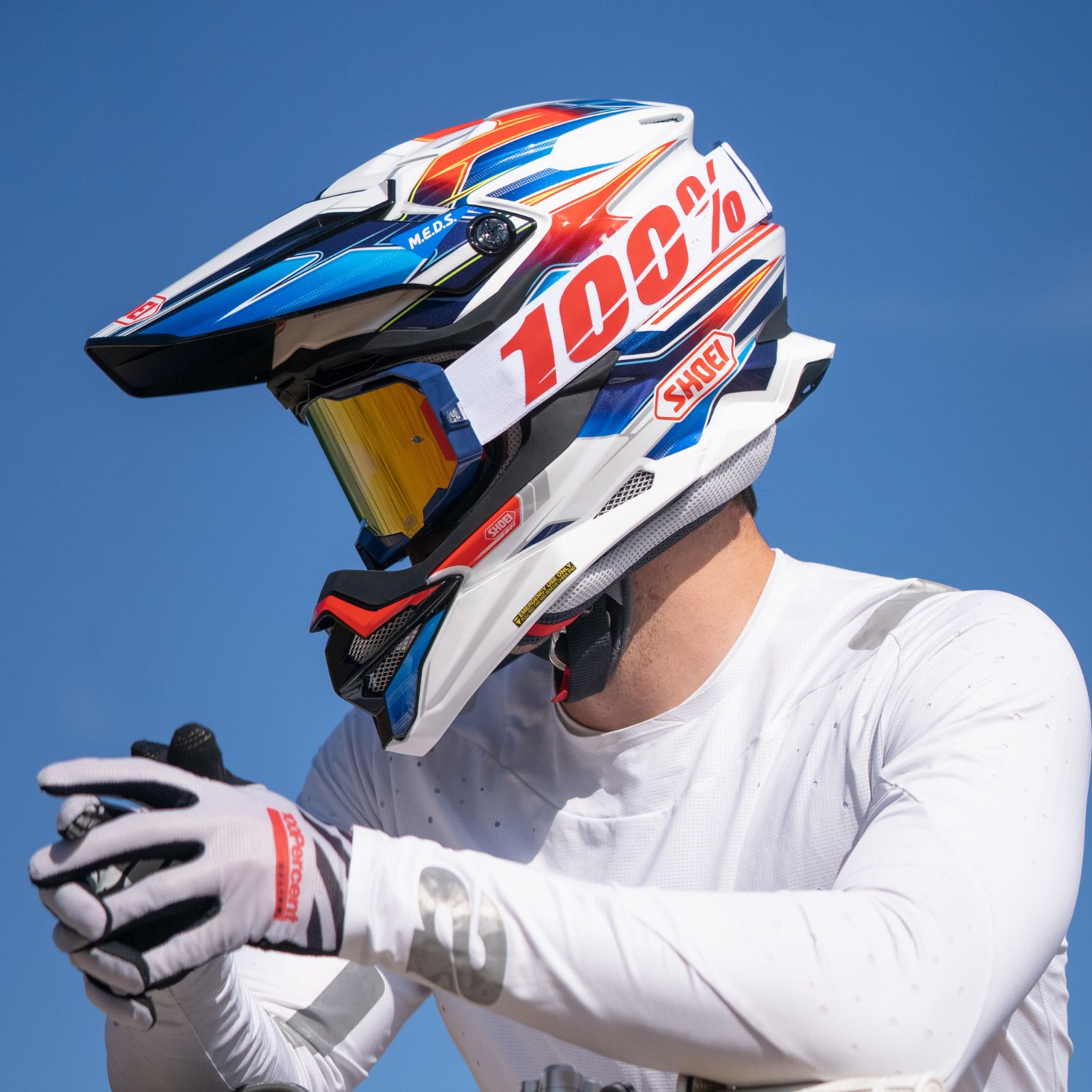 Ride with confidence in the SHOEI VFX-EVO Sparkle, featuring cutting-edge technology and the stylish Sparkle graphic, perfect for extreme off-road adventures.