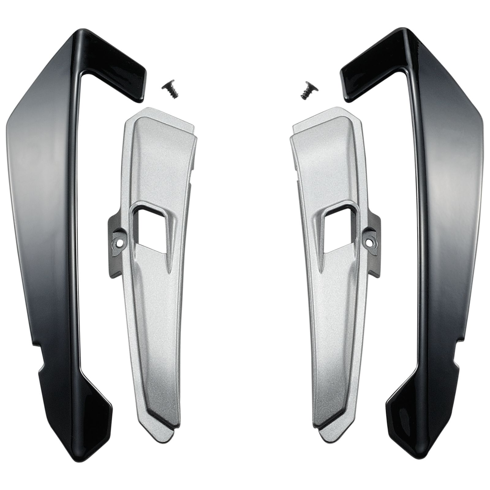 Enhance airflow in your SHOEI X-Fifteen helmet with the Top Air Outlet kit, including two covers, aluminum-colored inserts, screws, and self-adhesive foil for a secure, quick installation.